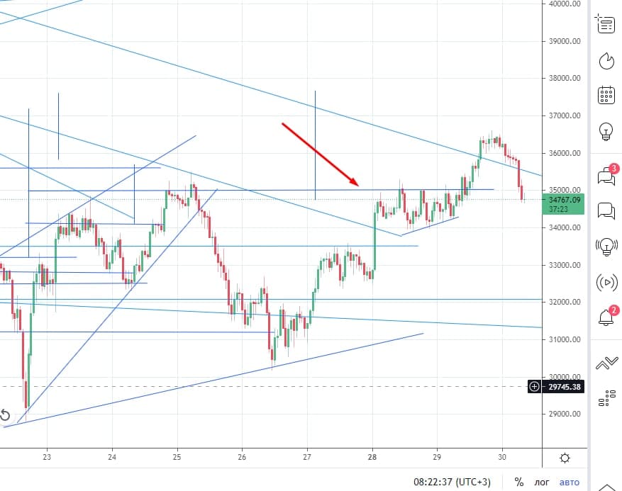 Вчера цена пробила 35 тысяч. Это сильный бычий знак. Но сегодня упала уже ниже. Значит это ложный пробой и есть все шансы сходить на 25...я вошел в шорт. Рынок живой и может измениться по сути в любой день. Чего стоит илон маск .... Цена находится под трендовой и в теории шорт в приоритете, но все может очень быстро изменится. Говорить про медвежий рынок глупо.
